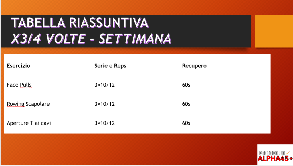 Programmazione: Prima di ogni allenamento upper body, 3 serie x 10 ripetizioni lente