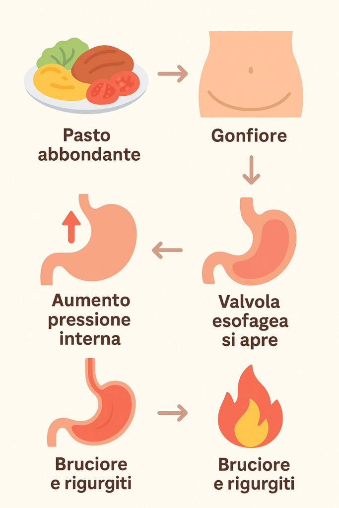 Quando ingoi il cibo senza masticare abbastanza, inghiotti anche aria. Uno studio dell’Università di Bologna (2019) ha dimostrato che le persone che mangiano in meno di 10 minuti ingeriscono fino al 50% di aria in più rispetto a chi mastica lentamente.